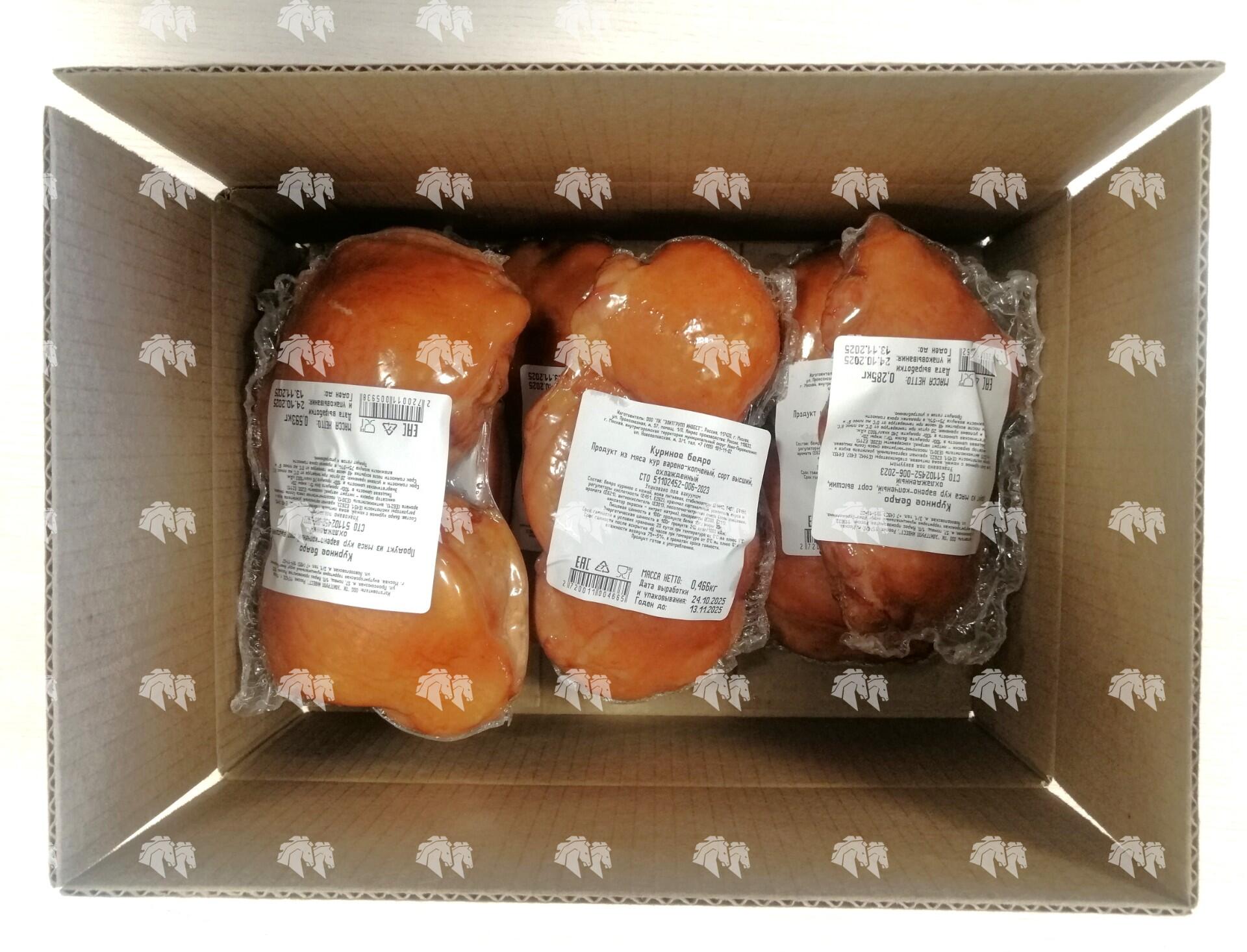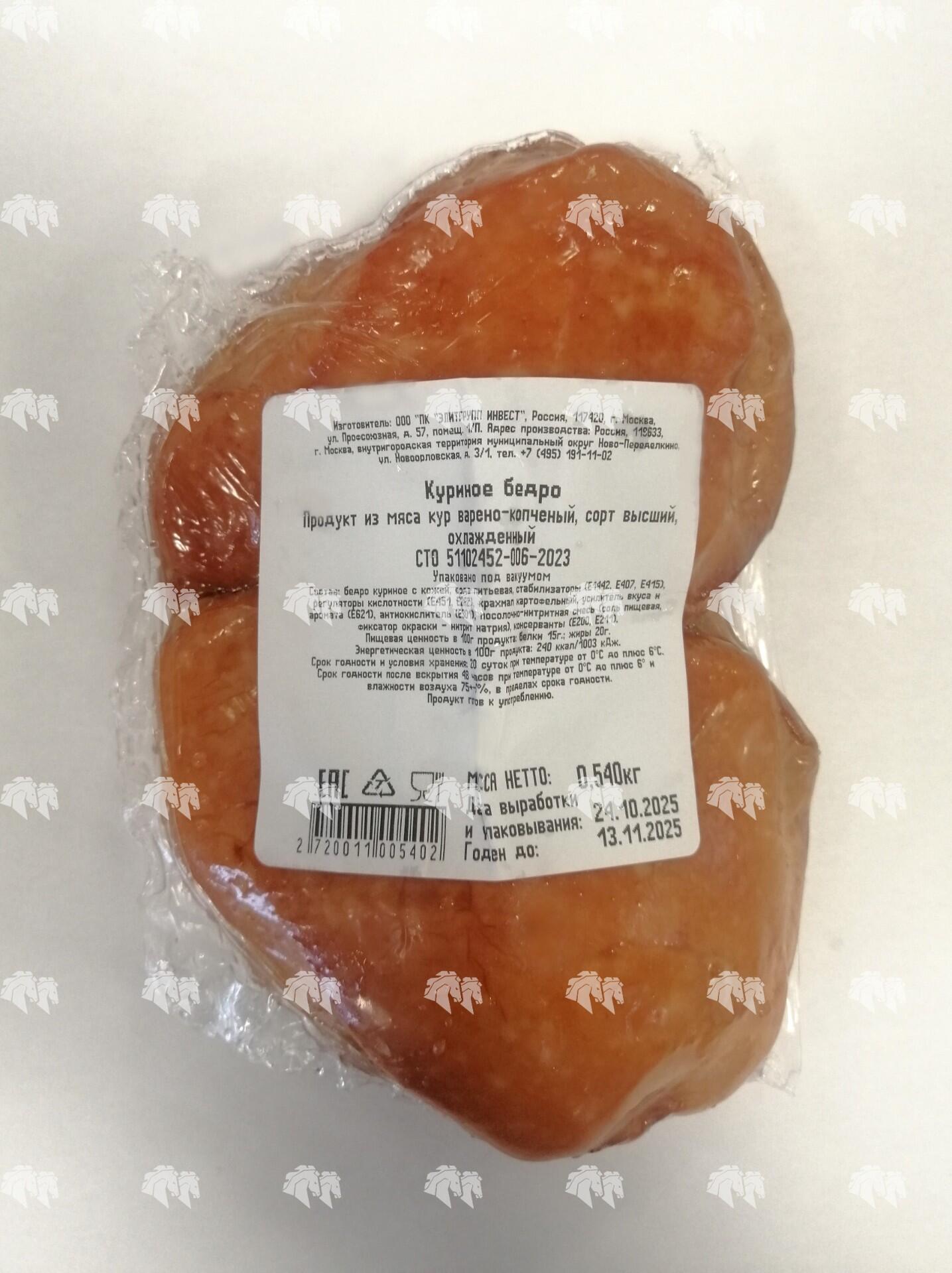 Продукт из мяса кур варено-копченый, сорт высший, охлажденный. Продукт готов к употреблению. Изготавливается по СТО 51102452-006-2023.