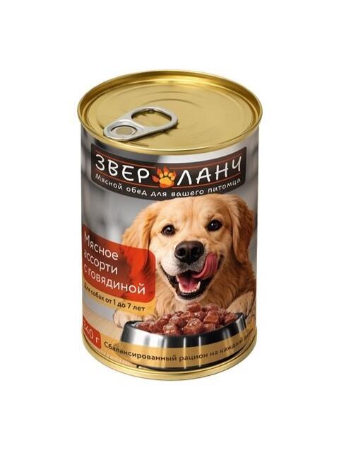 Мясное ассорти с говядиной. Корм консервированный для собак.