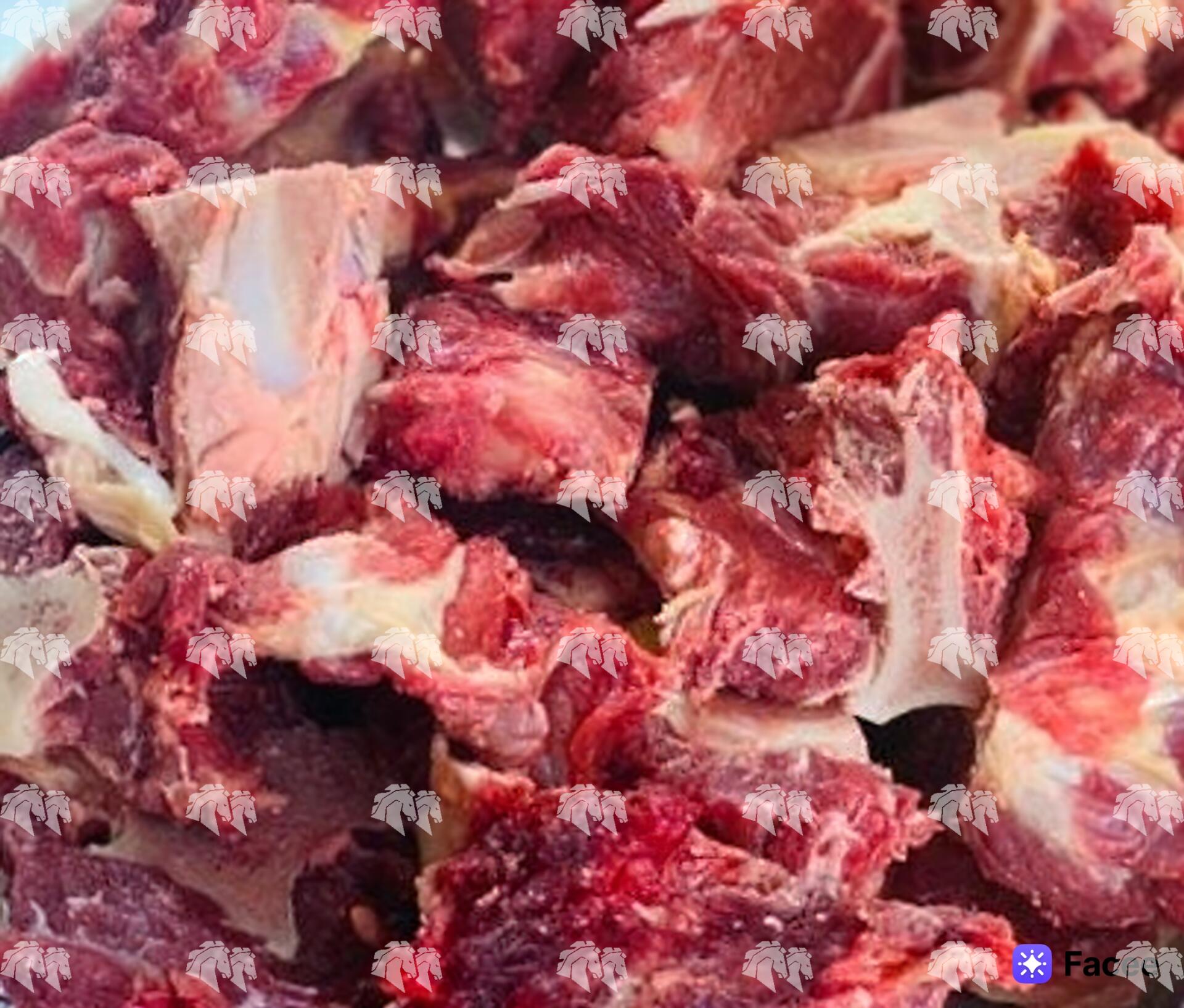 Рагу говяжье. Полуфабрикат из говядины мелкокусковой мясокостный категории Г. Мясокостные куски массой от 30 до 100 г с наличием мякотной ткани не менее 20% к массе полуфабриката.