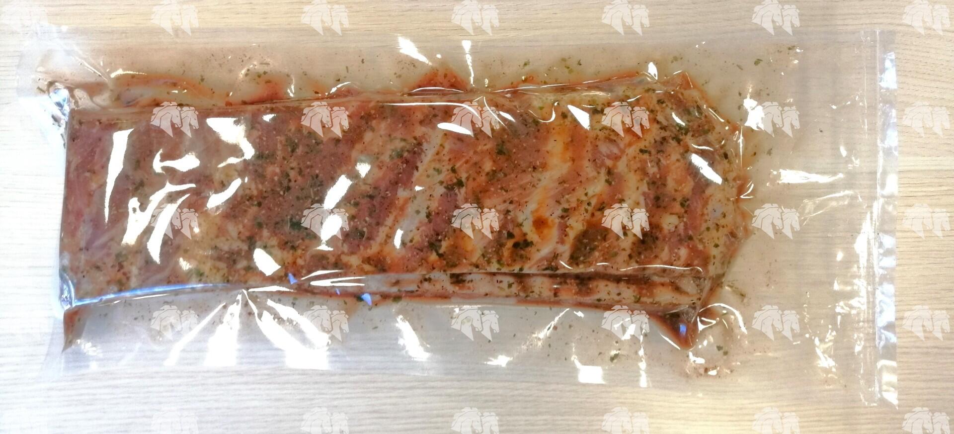 Свиные ребрышки "По-техасски". Полуфабрикат мясной из свинины мелкокусковой мясокостный в маринаде, категории В. Замаринованы традиционным способом с добавлением горчицы, перца чили, перца молотого, петрушки, кориандра. Идеально подходит для жарки на гриле, барбекю, сковороде и запекания в духовке. Весовой товар. Фасуется в вакуумный пакет.
