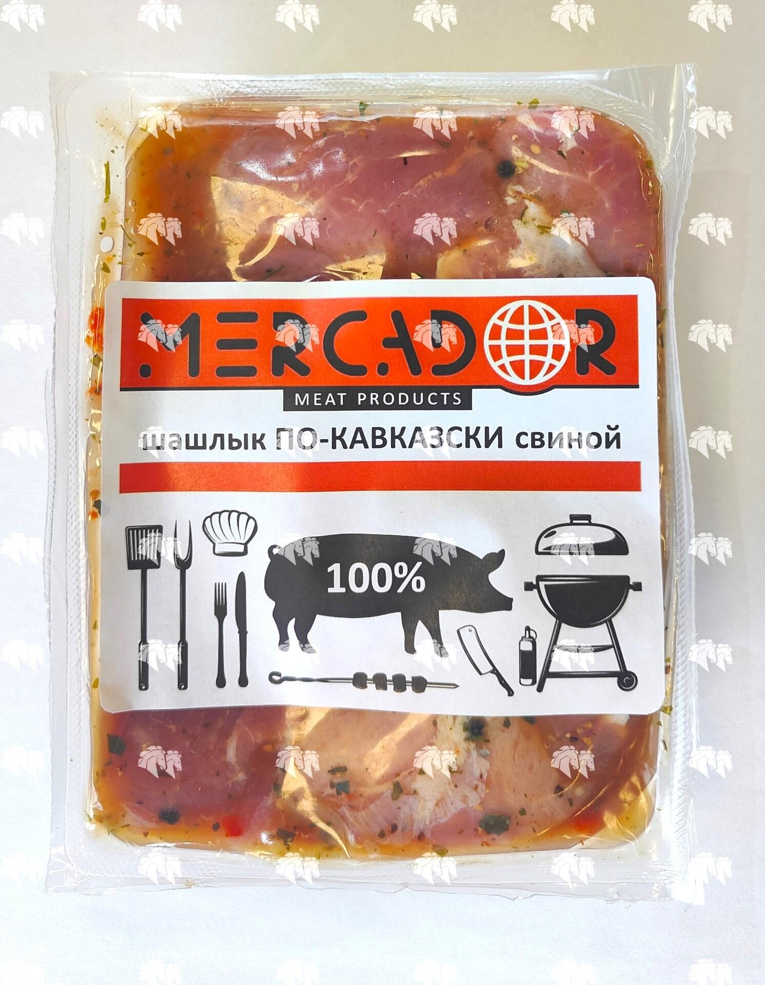 Полуфабрикат мясной из свинины мелкокусковой бескостный категории В. Шашлык свиной «ПО-КАВКАЗСКИ» изготовлен из отборной свиной лопатки. Ровные аппетитные кусочки лопатки замаринованы традиционным кавказским способом с добавлением натуральных овощей, перца черного и белого, петрушки, лаврового листа. Идеально подходит для жарки на гриле, барбекю, сковороде и запекания в духовке. Фасуется в вакуумный термоформер с фикс весом 1 и 2 кг.