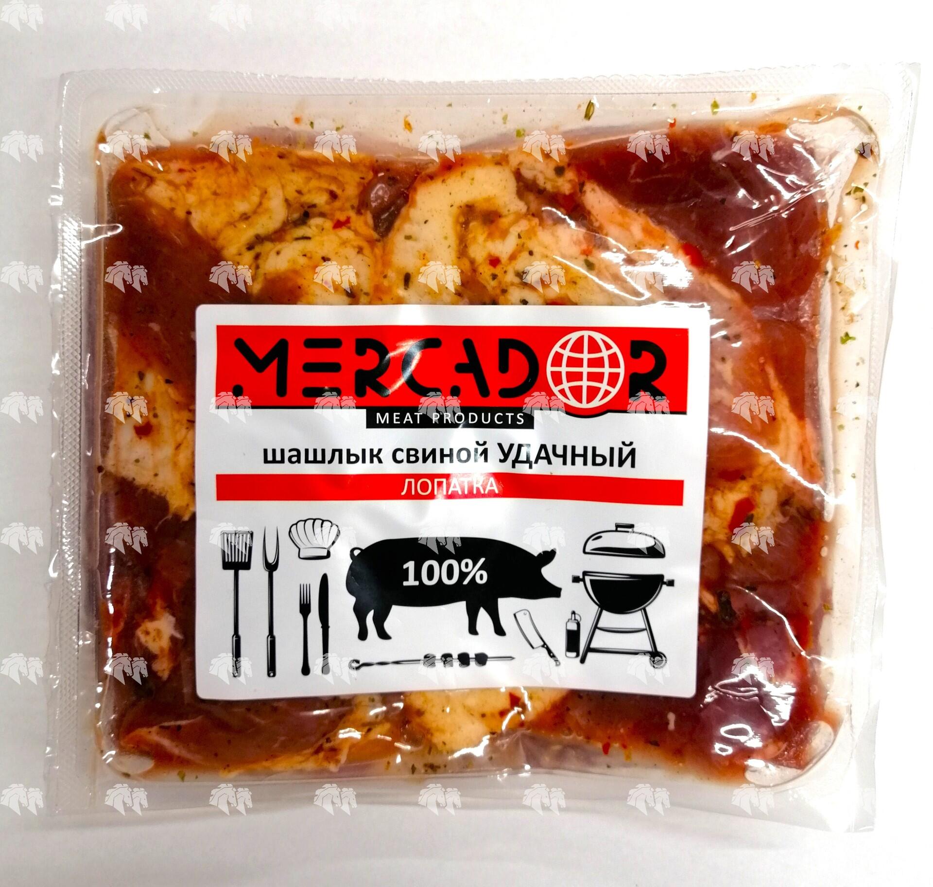 Полуфабрикат мясной из свинины мелкокусковой бескостный категории В. Шашлык «УДАЧНЫЙ» изготовлен из свиной лопатки. Ровные аппетитные кусочки лопатки замаринованы традиционным способом с добавлением соли и перца, что придает мясу естественный ароматический вкус. Идеально подходит для жарки на гриле, барбекю, сковороде и запекания в духовке. Фасуется в вакуумный термоформер с фикс весом 1 и 2 кг.