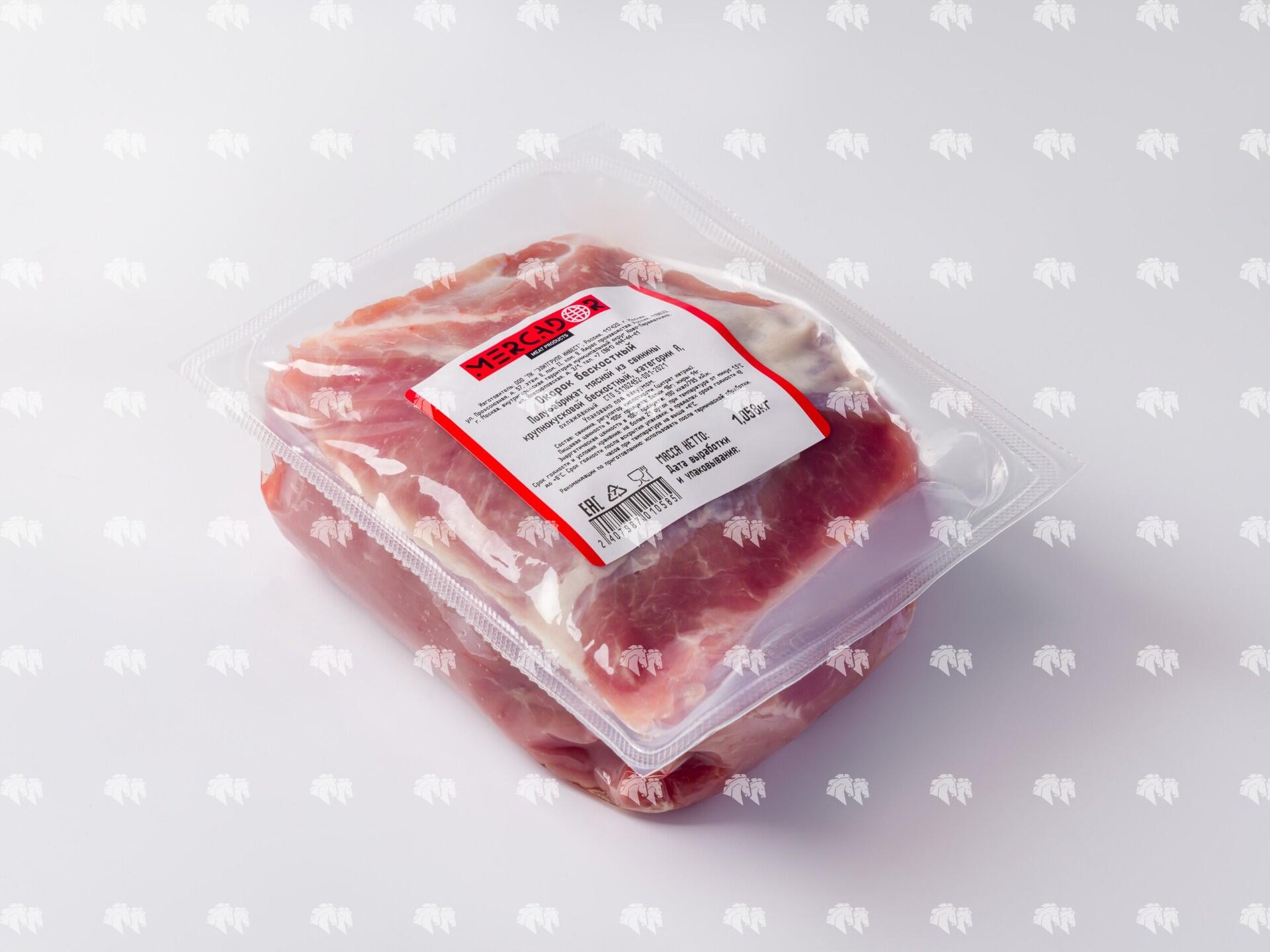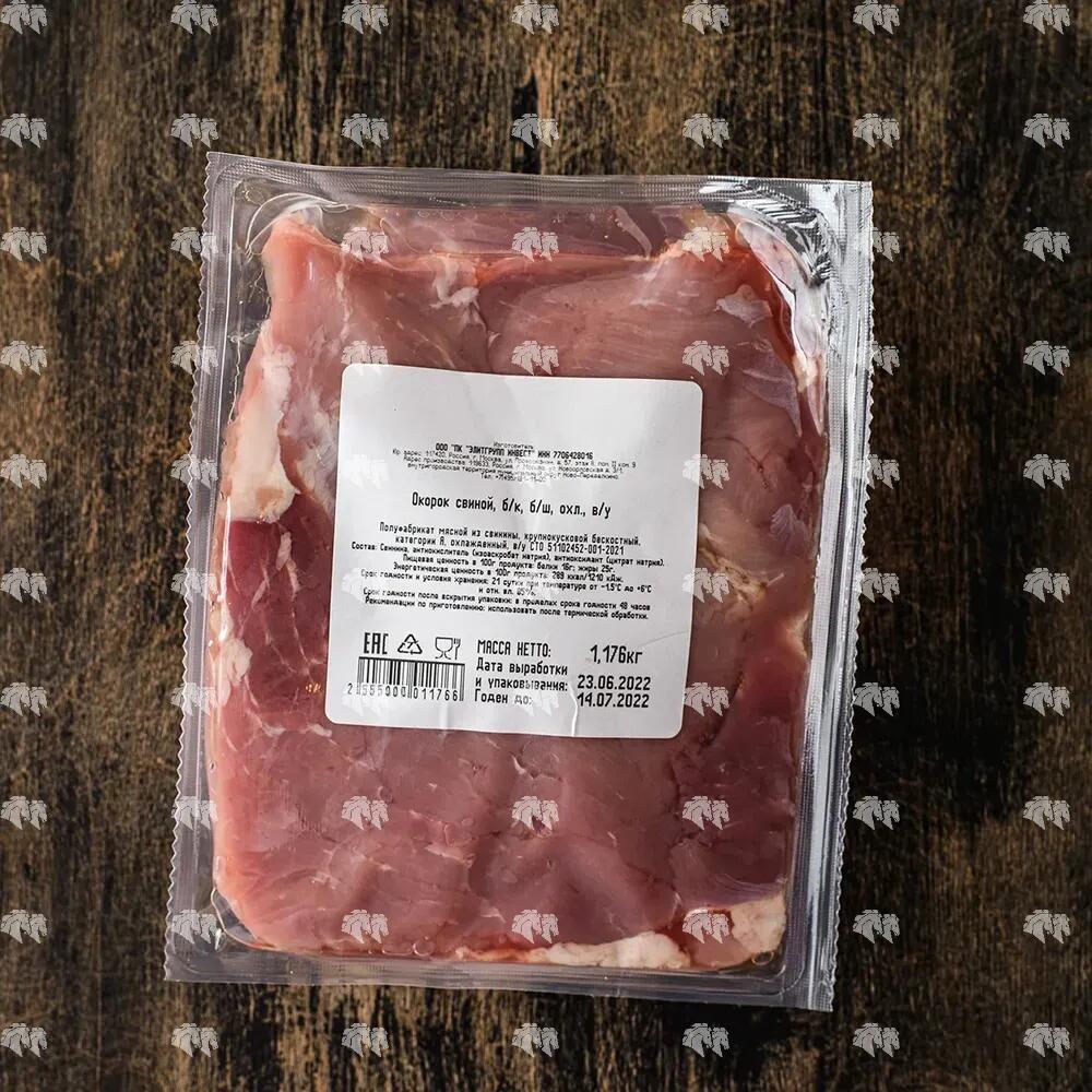 Популярный тазобедренный отруб свинины с нежным, сочным мясом и жировыми прослойками, без кости, без шкуры. Фасуется в индивидуальную упаковку (вакуумный термоформер 190х150 мм). Свиной окорок считается одной из самых универсальных частей туши домашней свиньи. Относительно небольшое содержание грубых мышц, жировых и соединительных тканей позволяет применять различные способы кулинарной обработки. Окорок можно жарить, варить, запекать, коптить, вялить. Он подходит как для первых, так и для вторых блюд.