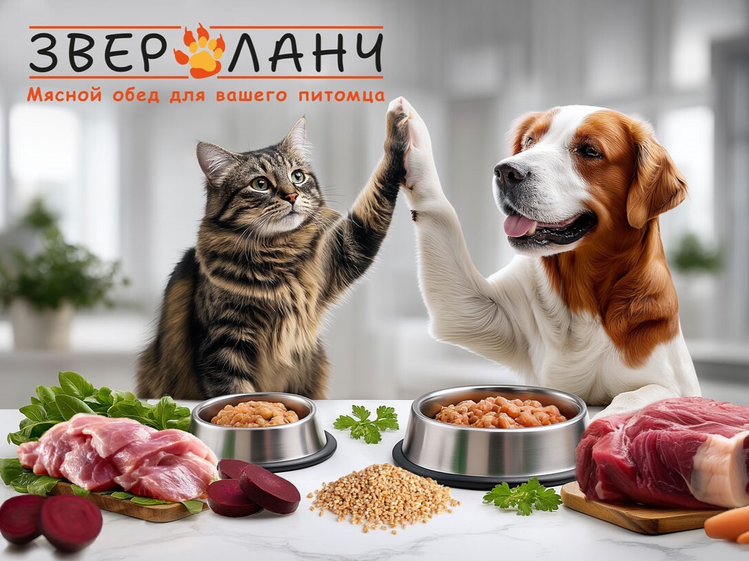 "Мясной обед для вашего питомца" — слоган продукции, выпускаемой под ТМ "ЗВЕРОЛАНЧ".