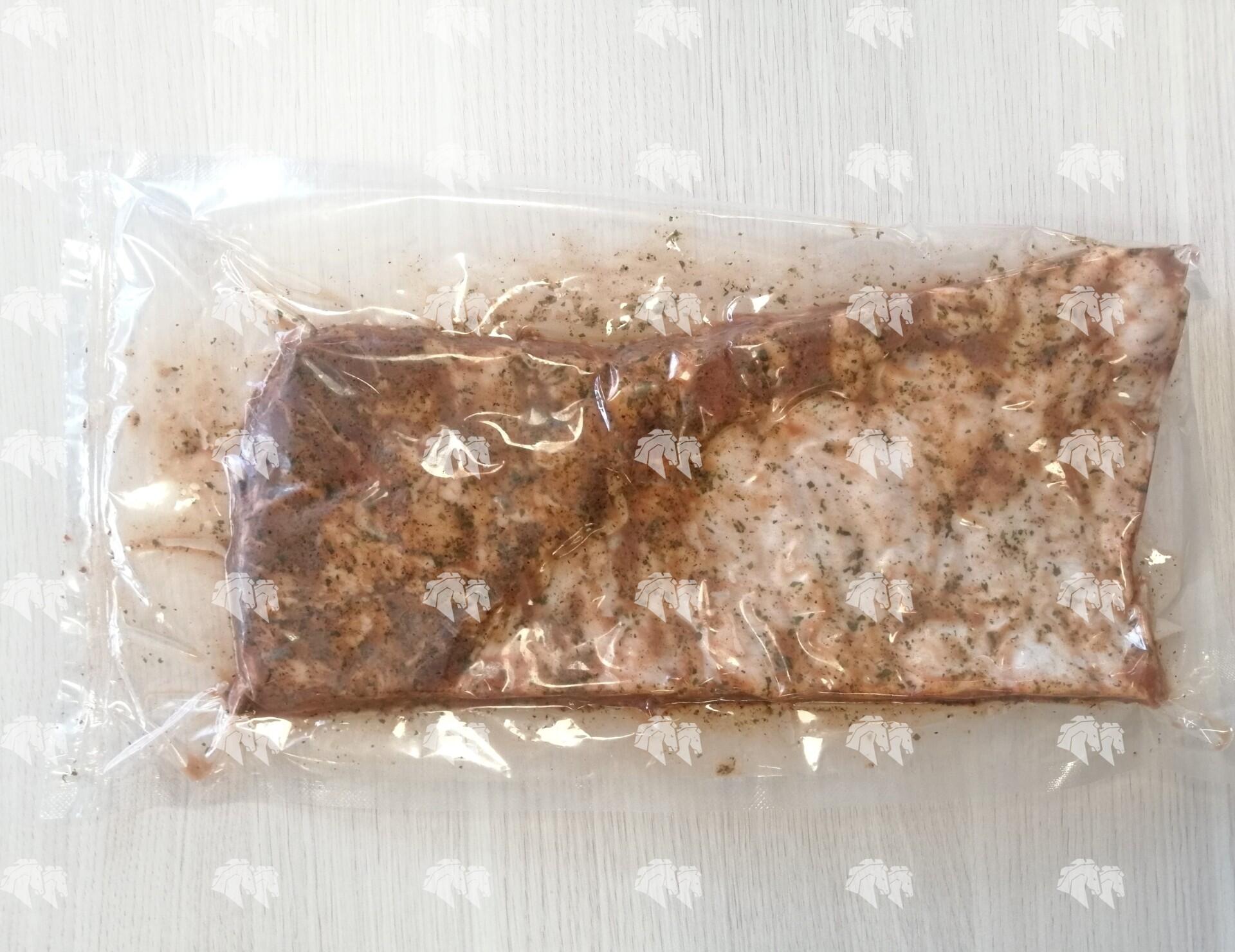 Свиные ребрышки "По-техасски". Полуфабрикат мясной из свинины мелкокусковой мясокостный в маринаде, категории В. Замаринованы традиционным способом с добавлением горчицы, перца чили, перца молотого, петрушки, кориандра. Идеально подходит для жарки на гриле, барбекю, сковороде и запекания в духовке. Весовой товар. Фасуется в вакуумный пакет.