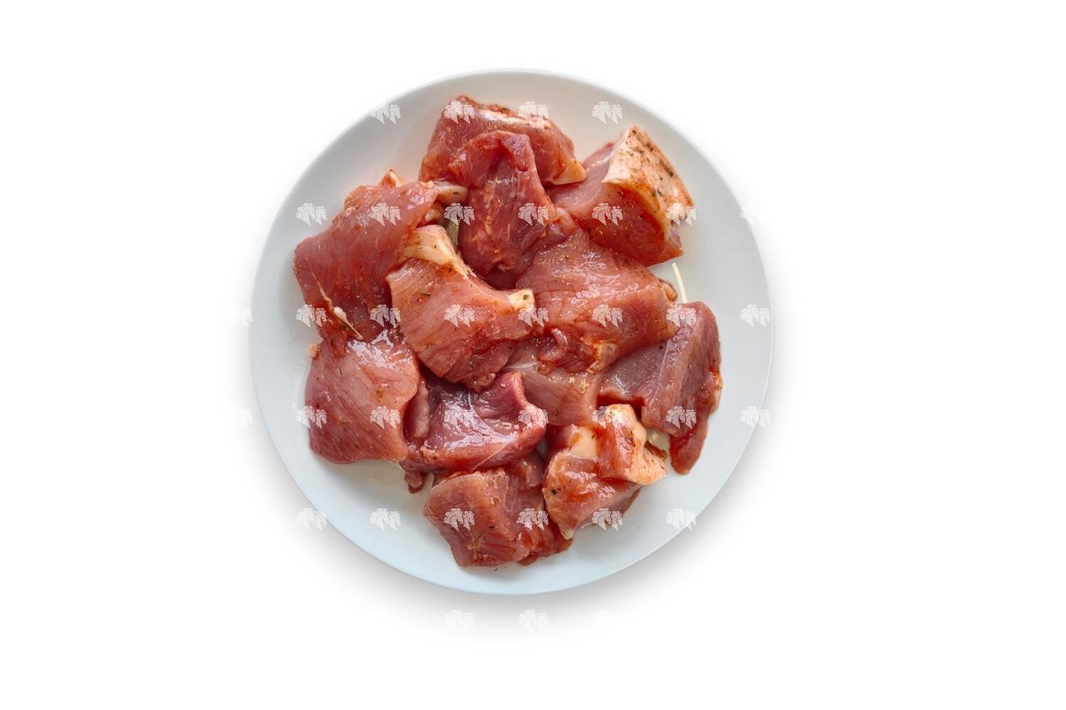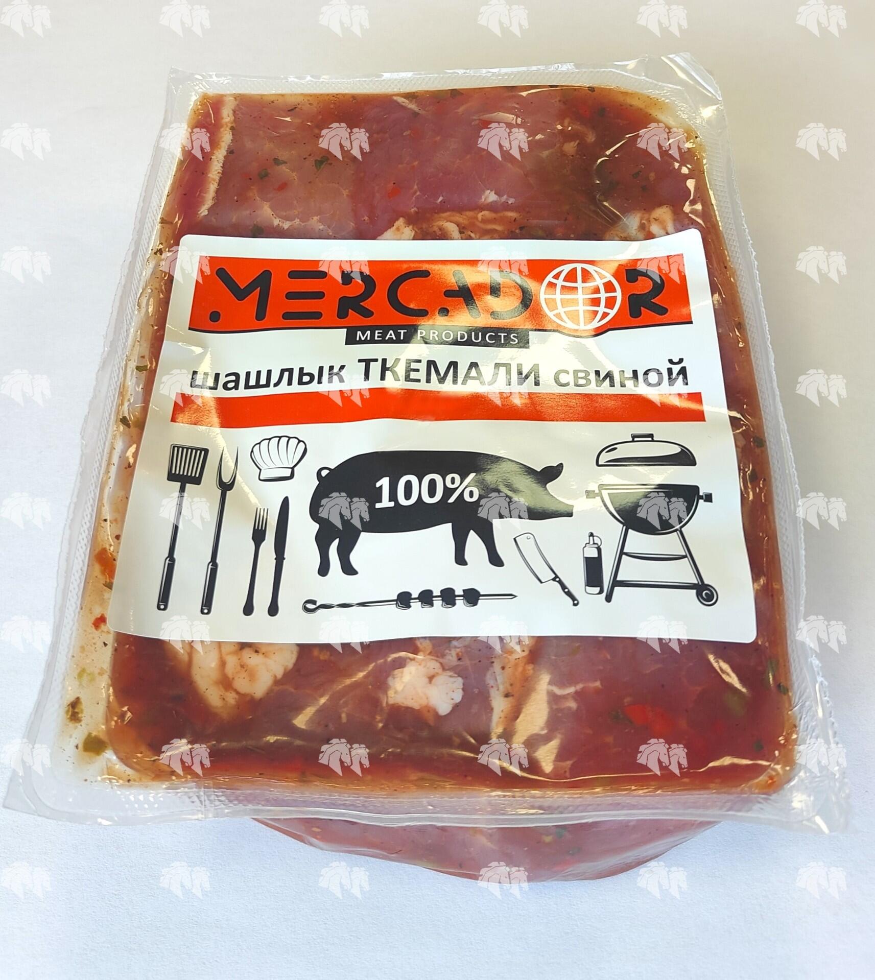 Полуфабрикат мясной из свинины мелкокусковой бескостный категории В (лопатка или окорок). Шашлык свиной «ТКЕМАЛИ» изготовлен из отборного свиного окорока. Ровные аппетитные кусочки окорока замаринованы традиционным способом с добавлением красной сливы, томата, кориандра, паприки, соли и перца. Идеально подходит для жарки на гриле, барбекю, сковороде и запекания в духовке. Фасуется в вакуумный термоформер с фикс весом 1 и 2 кг.