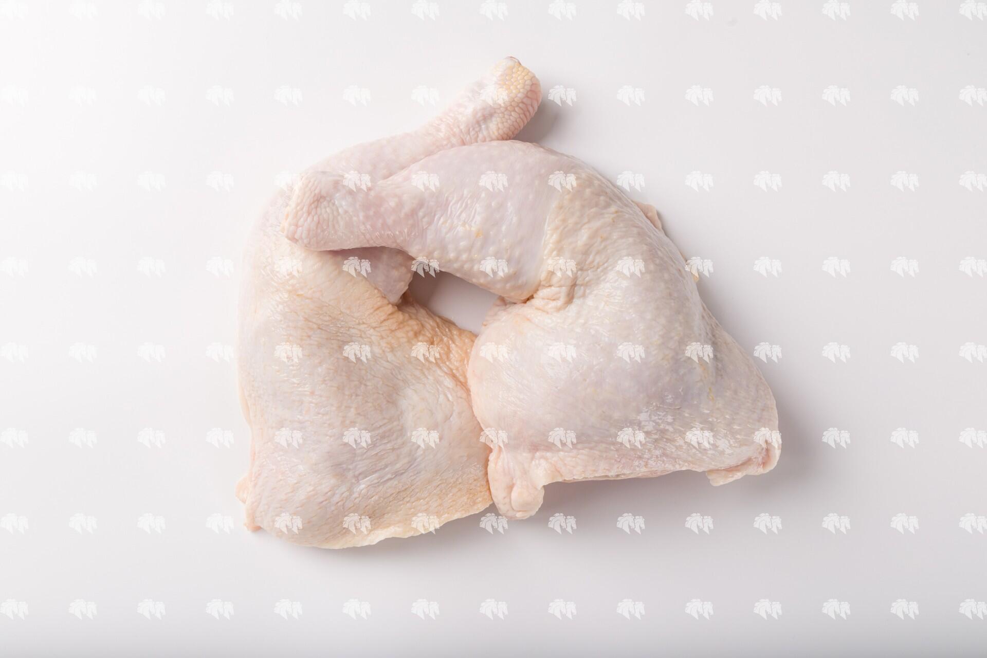 Полуфабрикат из мяса птицы (цыплят-бройлеров) кусковой мясокостный. Задняя четвертина — часть тушки птицы (ЦБ), полученная в результате разделки задней части тушки вдоль позвоночника или поперечной разделки полутушки на две примерно равные части. Включает окорочок с прилегающей частью спинки, брюшным жиром и половиной гузки. Подходит для первых и вторых блюд.